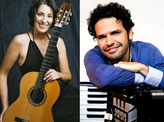 Márcia Taborna, violão, e Marcelo Caldi, acordeão.